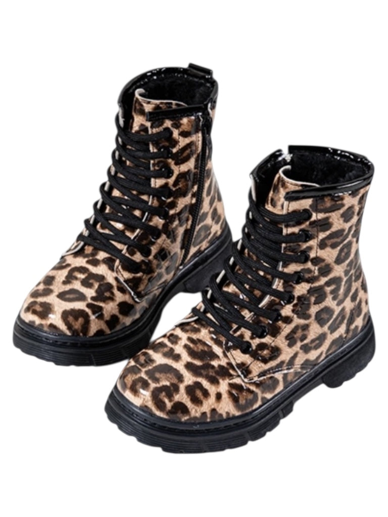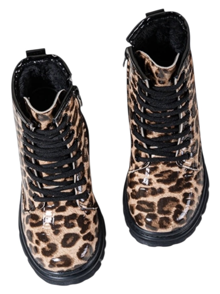 Bottines à lacets fourrées léopard vernies – Élégance & confort hivernal Affirme ton style même par temps froid avec ces...