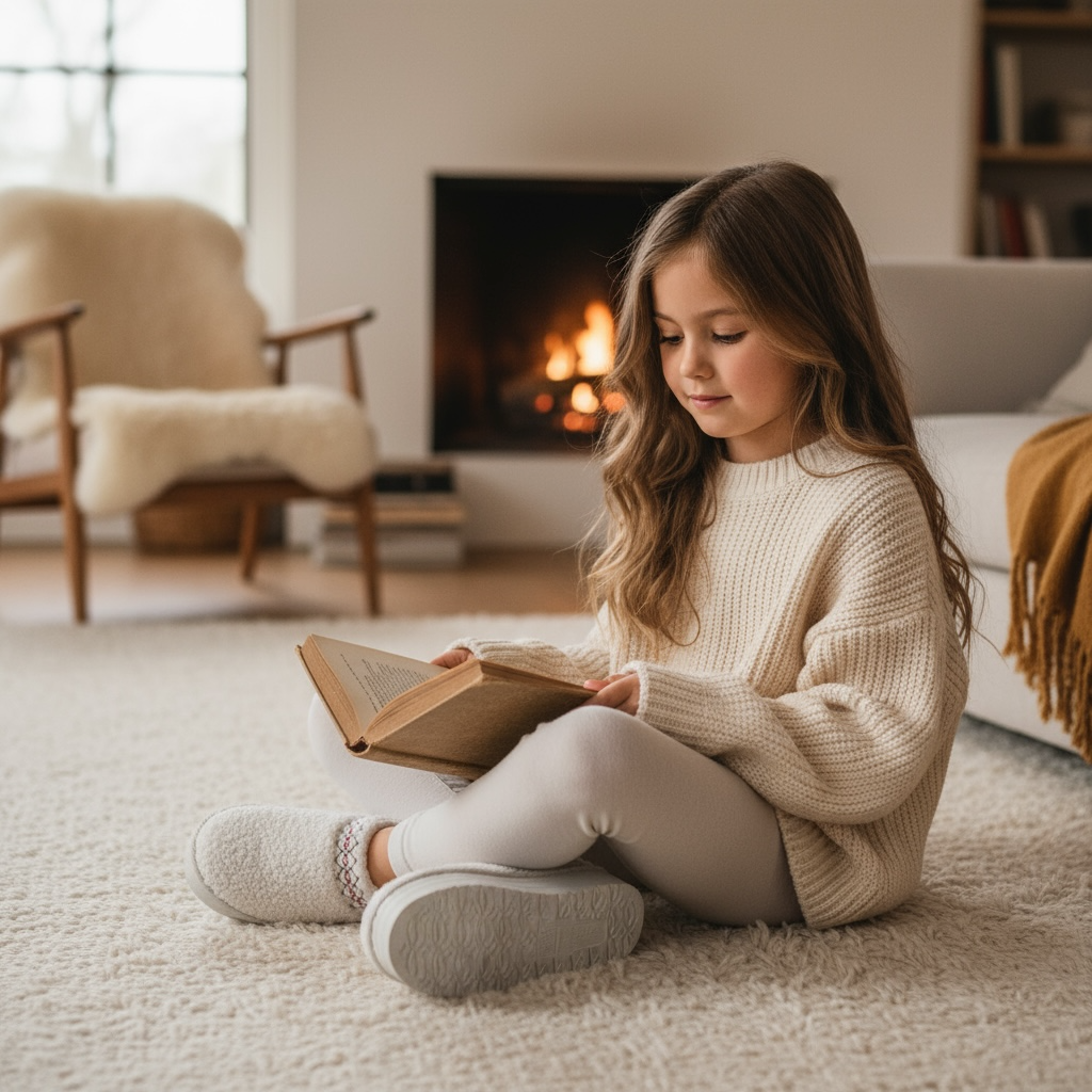 Chaussons Enfant blancs en Fausse Laine de Mouton – Broderie & Semelle Compensée Offrez à votre enfant un cocon de...